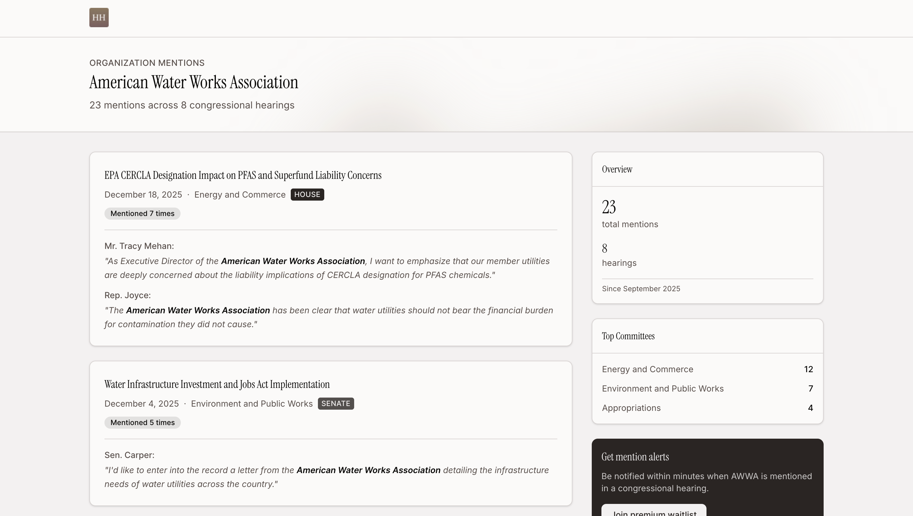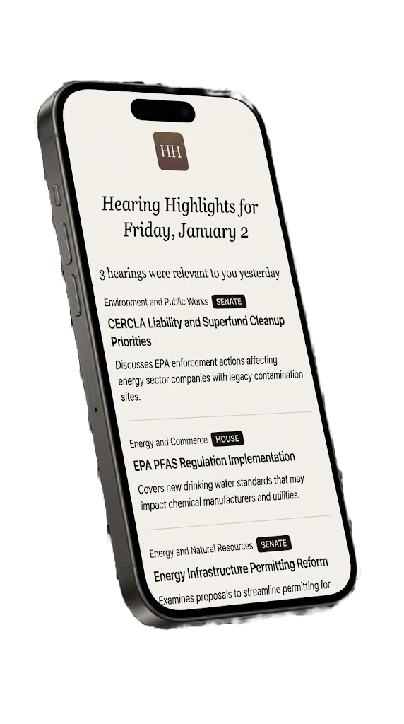 Join government affairs professionals who rely on Hearing Highlights for timely, personalized congressional intelligence.